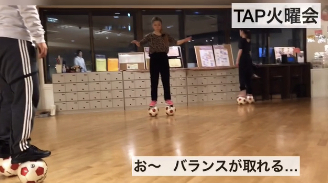 エクササイズ後にサッカーボールの上に乗ってみると…