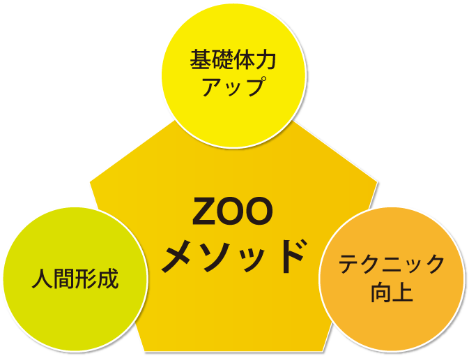 パフォーマンスアップに必要な体力要素や体の操作には、 瞬発力、スピード、体幹連動などのテーマを子供達がイメージしやすい動物に例えて伝えていきます。