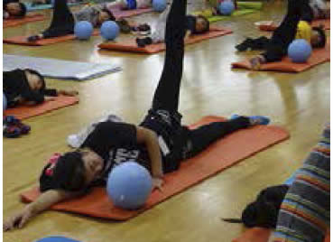 ピラティスでは、プロップ ( 道具 ) を使いながら、自分自身で体幹の安定やバランスを感じる事に集中して貰いました。
